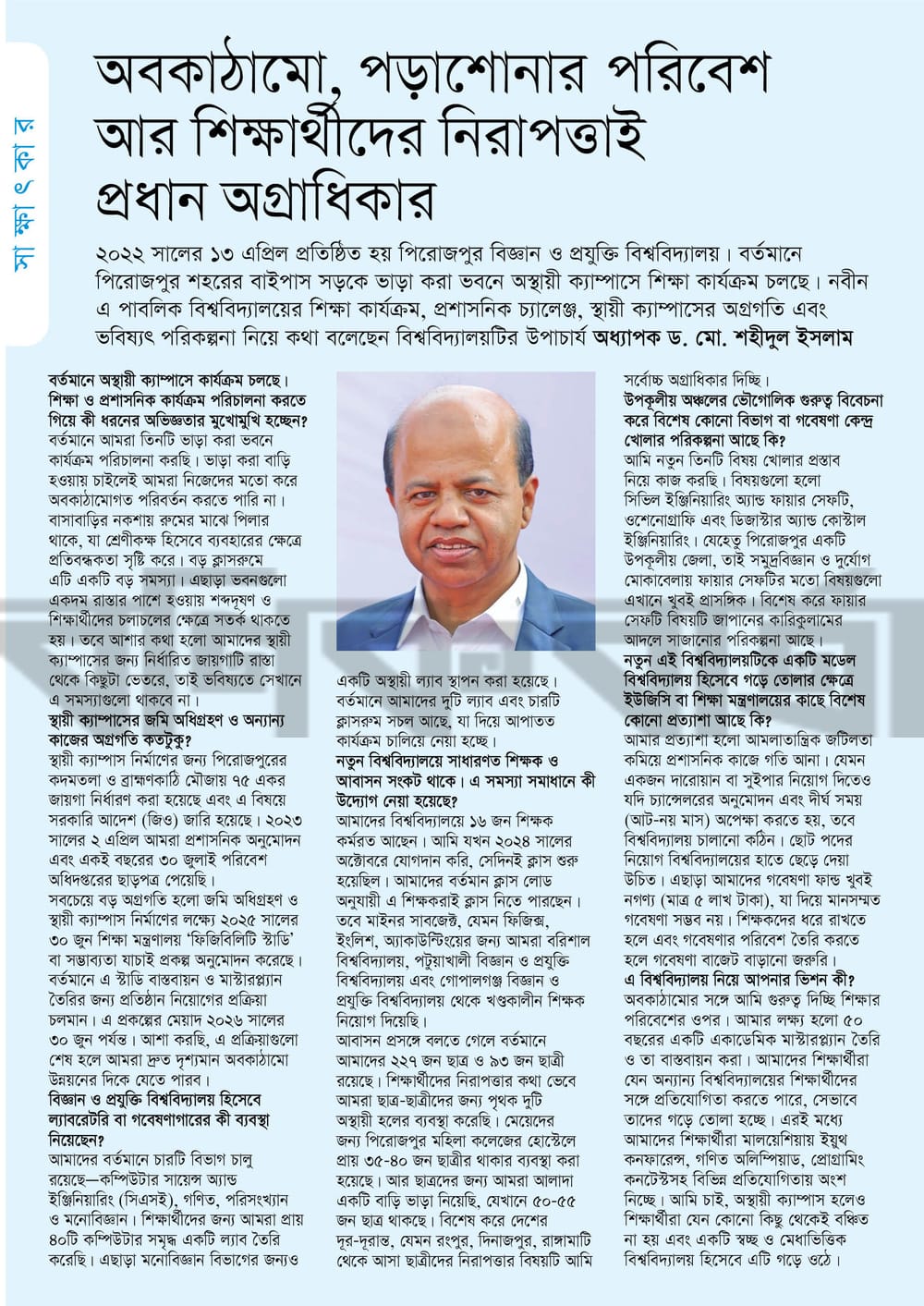 অবকাঠামো, পড়াশোনার পরিবেশ আর শিক্ষার্থীদের নিরাপত্তাই প্রধান অগ্রাধিকার - অধ্যাপক ড. মো. শহীদুল ইসল